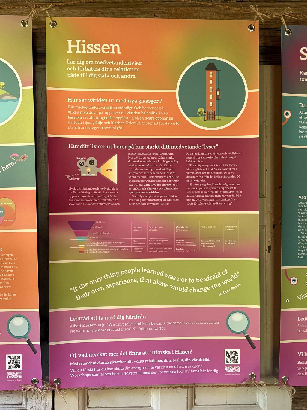 Vi hjälper dig att upptäcka den inre visdom som redan finns inom dig, så att du kan använda den i vardagen. När du ser hur du skapar din verklighet inifrån och ut, blir livet lättare att förstå och enklare att leva. Genom att förstå hur ditt liv fungerar bakom kulisserna, blir du mer självständig och kan välja vilken väg du vill ta.